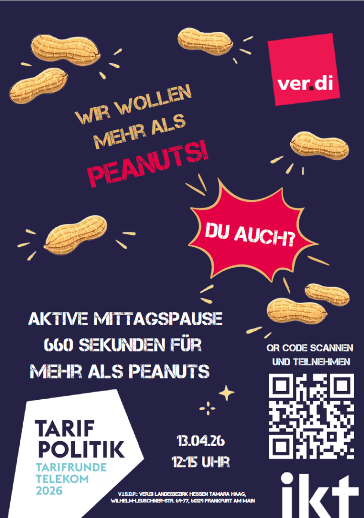 der April startet ereignisreich. Die Friedenspflicht endete zum Monatsauftakt und gleich nach den hessischen Osterferien startet am 13.04.2026 die erste Verhandlungsrunde der Tarifrunde Telekom 2026.